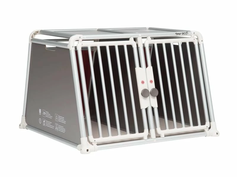 Die ECO Linie ist die neuste Innovation der Schweizer Hundeboxenschmiede 4pets. In ihr stecken 20 Jahre Erfahrung im Bau von sicheren Hundetransportsystemen. Die 4pets ECO Boxenlinie ist nach der neusten Testnorm ECE R17 vom TÜV Süd Crash getestet und zertifiziert worden. Ausserdem sind die ECO Boxen nachweislich aus ungiftigen Materialien hergestellt. Die schweizer Qualitätshundebox besteht aus ausgewählten High-Tech Materialien, wie glasfaserverstärktem Kunststoff, eloxiertem und kratzfestem Aluminium und beschichtetem HDF Holz. In der ECO-Linie ist die von 4pets patentierte Spezialrückwand «IPS – Impact Protection System» und das einhändig bedienbare «Safelock» Türverriegelungssystem verbaut. Das einzigartige Design passt in jedes moderne Auto. 4pets ECO ist die perfekte Box für Hundehalter die beim Hundetransport keine Kompromisse eingehen möchten.