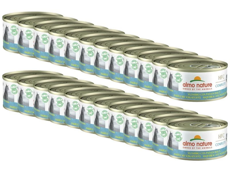 Almo Nature Nassfutter HFC Complete Makrele mit Süsskartoffel, 24 x 70 g