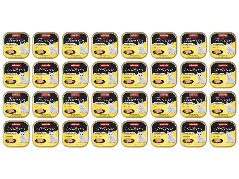 Vom Feinsten Adult Mildes Menü steht für ausgewogene, leckere gesunde Ernährung auf höchstem Niveau für ausgewachsene Katzen von 1 – 6 Jahren. Leckere Rezepturen ausschliesslich aus hoch verdaulichem Putenfleisch – ohne Innereien und Leber – bieten Katzen einen besonderen Genuss. Die fein-stückigen Pasteten versorgen die ausgewachsene Katze mit allen lebenswichtigen Nährstoffen. Mit Calciumcarbonat, einer natürlichen Calciumquelle, welche lebenswichtiges Calcium bereitstellt und Natriumchlorid, einer natürlichen Quelle für die lebensnotwendigen Mengenelemente Natrium und Chlorid.
