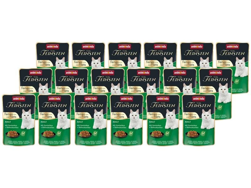 Vom Feinsten Adult Feines mit Filet steht für ausgewogene, leckere gesunde Ernährung auf höchstem Niveau für ausgewachsene Katzen von 1 – 6 Jahren. Die Qualität der fleischlichen Rohstoffe in den zarten Stückchen kombiniert mit delikater Sauce und feinsten Filetstückchen garantiert einen einzigartigen Genuss. Die feinen Gourmet-Ragouts versorgen die ausgewachsene Katze mit allen lebenswichtigen Nährstoffen.