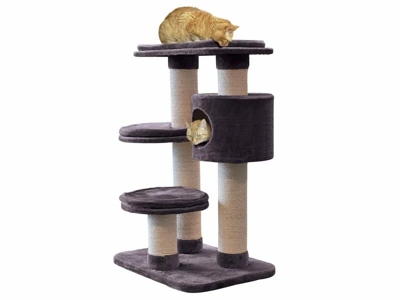 Wunderschöner Azoona Kratzbaum «Jakob» mit drei Liegeplätzen und einer Kuschelhöhle in Beige. Auch ideal für mehrere Katzen geeignet. Mit Höhle und Liegeflächen.