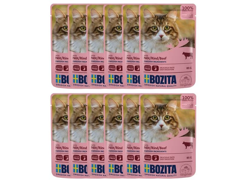 Bozita Nassfutter Pouch Häppchen in Sauce Rind, 12 x 85 g