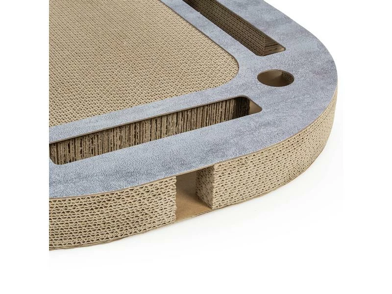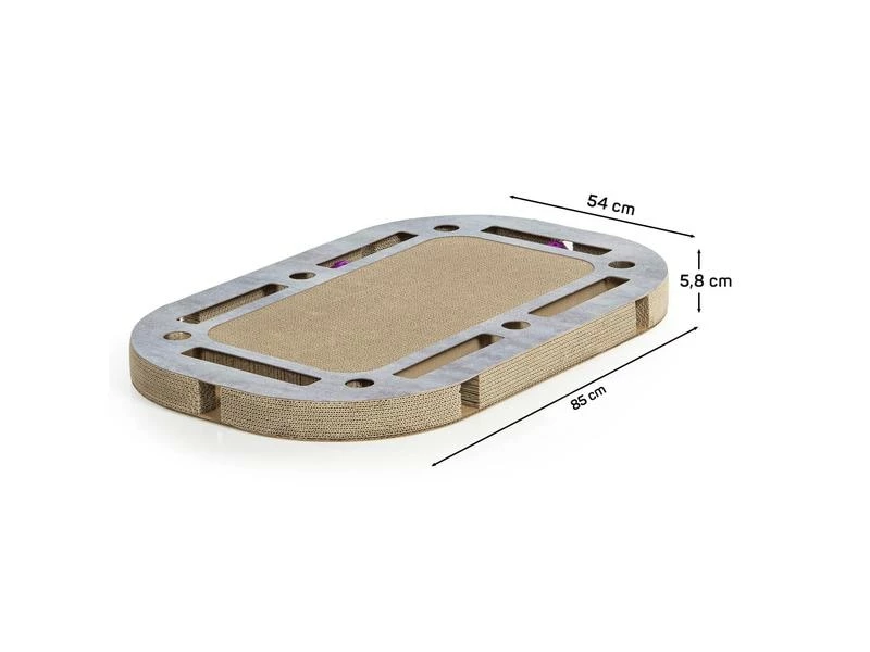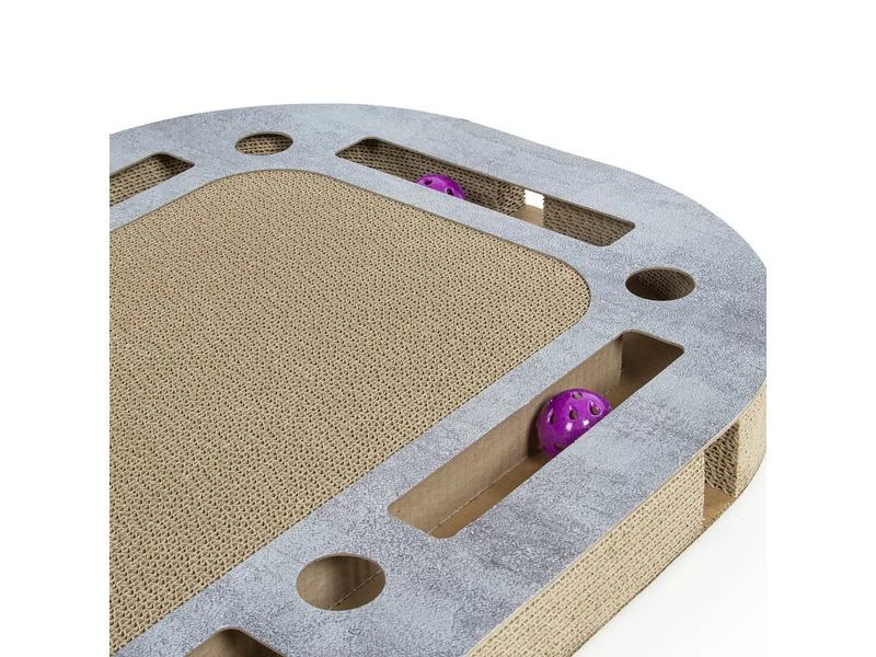 Die grosszügige Kratzfläche kann nach Herzenslust zerkratzt und bearbeitet werden. Rundherum befinden sich Öffnungen zum Spielen. Verstecken Sie Spielsachen und Leckerli im Rahmen der PlayPlate und lassen Sie Ihre Stubentiger danach suchen.