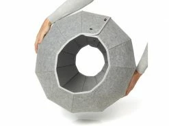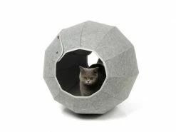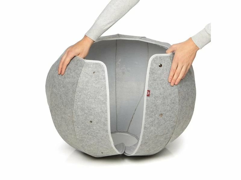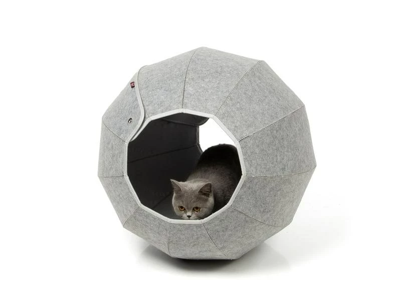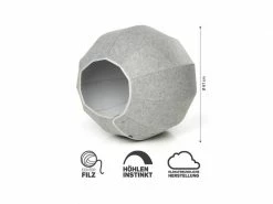 Mit diesem Model besticht die CanadianCat Company erneut mit einem hochwertigen Filz auf der Aussenseite und einem gemütlich, flauschigen Plüsch auf der Innenseite der Katzenhöhle in Kugelform. Die Katzenhöhle ist mit Hilfe von 4 Druckknöpfen leicht zu einer Kugel knöpfbar und lädt somit im Inneren zum Wohlfühlen aber auch Spielen ein. Es ist ausreichend Platz vorhanden um gemeinsam von neuen Abenteuern zu träumen. Ein Ausschnitt auf jeder Seite bildet den Eingang in die aussergewöhnliche und gemütliche Höhle. Hier finden Stubentiger ausreichend Platz, um sich zurückzuziehen und auszuruhen. Sehr viel Schutz und Geborgenheit spendet es auch Katzenmüttern mit ihren Kitten, welche in dieser geräumigen Katzenhöhle die Ruhe für den notwendigen Schlaf finden. Geeignet sind die Katzennester auch für Katzen, die gerne ihre Zeit aneinander gekuschelt verbringen. Durch die clevere Bauart ist diese Höhle als Kugel geknöpft stabil und robust, jedoch auch zusammengelegt sehr platzsparend und leicht verstaut. Ideal für einen Mehrkatzenhaushalt.