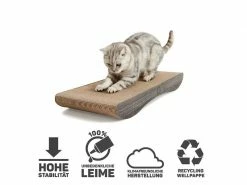 Die nächste Stufe in der Entwicklung von modernen Kratzbrettern ist der Comet. Er passt in jedes Wohnambiente, ist in zwei Grössen und zwei Farben erhältlich und verdient zu Recht die Bezeichnung Kratzmöbel. Eine ebene und eine geschwungene Seite laden zum Krallen, Kratzen, aber auch Dösen und Liegen ein. Katzen bevorzugen bzw. lieben Kartons aus Wellpappe und nehmen die Kratzbretter meist sofort in Beschlag. Die besonders feste Oberflächenstruktur nimmt auch grosse Belastungen ganz problemlos auf und bietet der Katze die ideale Möglichkeit zum Krallen und Kratzen, egal wie gross oder schwer die Katze ist.