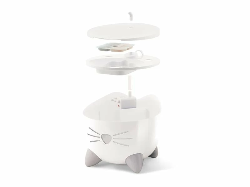 Der Catit PIXI Trinkbrunnen versorgt deine Katze kontinuierlich mit frischem, sauberem Wasser. Fliessendes Wasser regt Katzen dazu an, mehr zu trinken, was dazu beiträgt, Harnwegserkrankungen vorzubeugen. Der enthaltene Filter entfernt Schmutzpartikel, Gerüche und Verunreinigungen aus dem Trinkwasser deiner Katze. Ausserdem enthärtet er das Wasser, indem er den Magnesium- und Kalziumgehalt im Wasser reduziert.