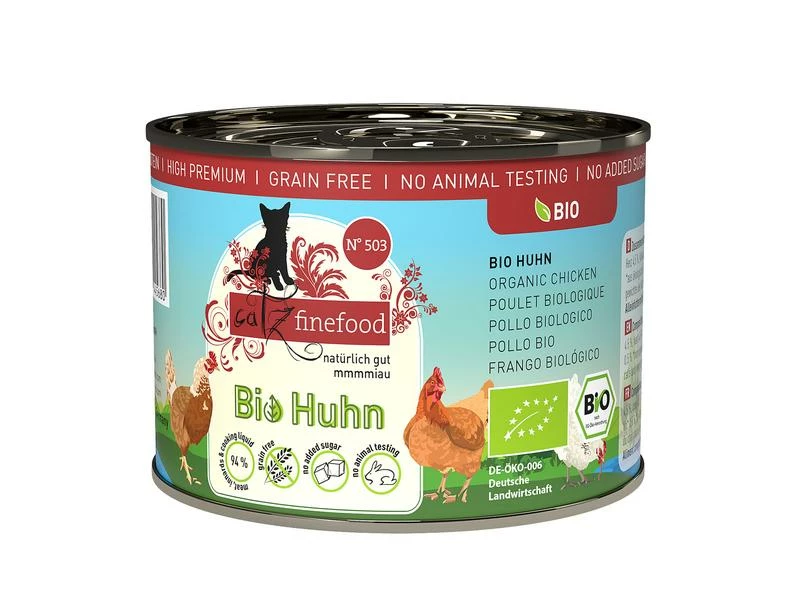 Die ausgewogene Rezeptur ist ideal auf die Bedürfnisse von Katzen zugeschnitten. Jegliches Fleisch, Innereien, sowie die katzengerechten geringen Anteile von Obst und Gemüse stammen aus ökologisch zertifizierter Landwirtschaft. Natürlich gentechnik-frei. Katzen lieben den intensiven Geschmack des frisch verarbeiteten Bio-Fleisches und -Innereien. Auch ernährungssensible oder von Futtermittelallergien betroffene Samtpfoten dürfen catz finefood BIO geniessen, denn jede Geschmacksrichtung basiert auf einer Fleischsorte und die transparente Deklaration erleichtert die Auswahl der passenden Sorte für Ihr Tier.