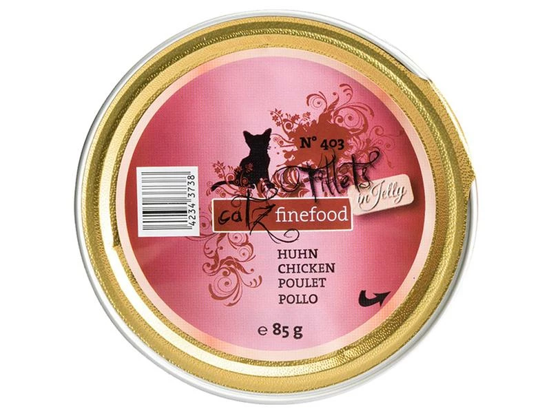 Mit catz finefood Fillets in Jelly servieren Sie Ihren Samtpfoten schmackhaftes Filetfleisch in delikatem Gelee. Natürliche Zutaten und die Verwendung von bestem Filetfleisch sorgen für grosse Akzeptanz auch bei besonders wählerischen Katzen. Viele Stubentiger und Outdoor-Abenteurer lieben zartes Filetfleisch, jedoch sind die meisten erhältlichen Katzenfutter dieser Art nur Ergänzungsfutter. Dieses Futter ist ein ausgewogenes Alleinfutter, das Ihre Katze mit allen Nährstoffen versorgt. Aus diesem Grund ist es für die dauerhafte tägliche Fütterung geeignet. Auch futtersensible Katzen dürfen in den Genuss kommen, da die Rezeptur kein Getreide und keinen Reis enthält.