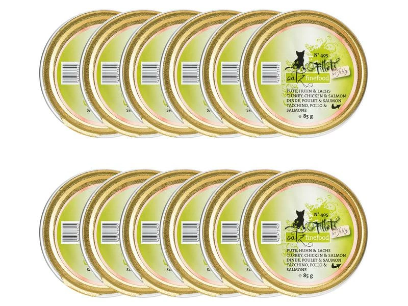 Mit catz finefood Fillets in Jelly servieren Sie Ihren Samtpfoten schmackhaftes Filetfleisch in delikatem Gelee. Natürliche Zutaten und die Verwendung von bestem Filetfleisch sorgen für grosse Akzeptanz auch bei besonders wählerischen Katzen. Viele Stubentiger und Outdoor-Abenteurer lieben zartes Filetfleisch, jedoch sind die meisten erhältlichen Katzenfutter dieser Art nur Ergänzungsfutter. Dieses Futter ist ein ausgewogenes Alleinfutter, das Ihre Katze mit allen Nährstoffen versorgt. Aus diesem Grund ist es für die dauerhafte tägliche Fütterung geeignet. Auch futtersensible Katzen dürfen in den Genuss kommen, da die Rezeptur kein Getreide und keinen Reis enthält.
