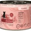 Die Rezepturen von catz finefood Classic wurden an die Bedürfnisse von heranwachsenden Katzen angepasst. Aufgrund der sehr ähnlichen Grundrezepturen wird die kleine Samtpfote schon mit dem Geschmack vertraut gemacht, den sie als erwachsene Katze in catz finefood Classic wiederfindet. Damit die kleinen Katzen das Futter einfach geniessen können, ist die Futterkonsistenz etwas feiner. Inspiration für die Rezepturen sind die natürlichen Beutetiere von Katzen, somit enthält das Nassfutter viel frisches Fleisch, Innereien und Kochsud,