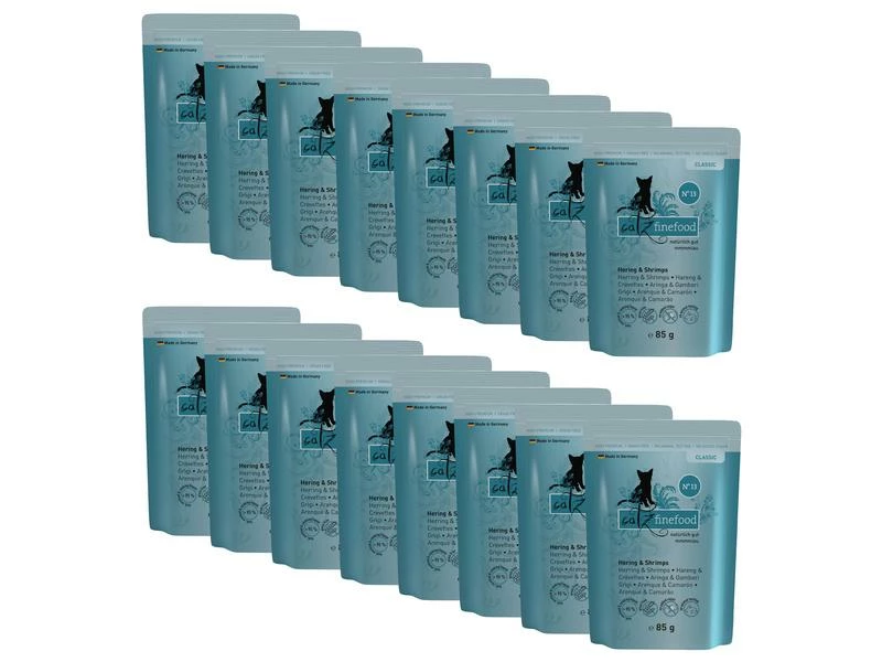| Zusammensetzung | Hering 45%, Hering- und Shrimpsud 25.6%, Shrimps 25%, Kürbis 2%, Aloe Vera 1%, Mineralstoffe 1%, Seealge 0.2%, Lachsöl 0.2% |