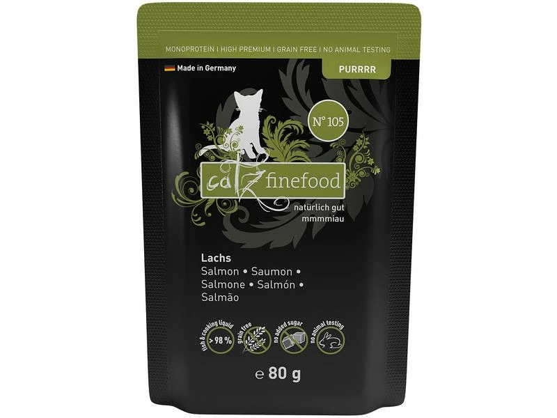 Catz finefood Purrrr ist ein sehr hochwertiges Katzennassfutter, das nicht nur super schmeckt, sondern auch für ernährungssensible oder mit Futtermittelunverträglichkeiten geplagte Katzen bestens geeignet ist. In der Kürze der Zutatenliste liegt die Qualität. Catz finefood Purrrr ist ein Alleinfuttermittel. Garantiert ohne Konservierungsstoffe, ohne Geschmacksverstärker, ohne Farbstoffe und Gentechnikfrei. Monoprotein-Feinkost für Katzen zur artgerechten Ernährung unserer Samtpfoten.