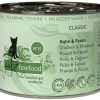 Catz finefood Purrrr ist ein sehr hochwertiges Katzennassfutter, das nicht nur super schmeckt, sondern auch für ernährungssensible oder mit Futtermittelunverträglichkeiten geplagte Katzen bestens geeignet ist. In der Kürze der Zutatenliste liegt die Qualität. Catz finefood Purrrr ist ein Alleinfuttermittel. Garantiert ohne Konservierungsstoffe, ohne Geschmacksverstärker, ohne Farbstoffe und Gentechnikfrei. Monoprotein-Feinkost für Katzen zur artgerechten Ernährung unserer Samtpfoten.