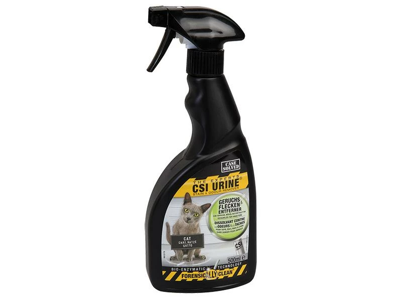 CSI URINE Cat, beseitigt durch Ihre Katze verursachte Urin-Flecken und -Gerüche nachhaltig. Einzigartige Formulierung auf der Basis von Enzymen. Bekämpft auch anderes organisches Material wie Fäkalien, Erbrochenes oder Blut.