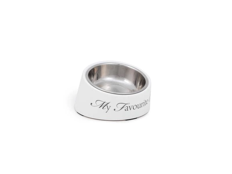 Der Designed by Lotte My Favourite Cat Feeding Bowl ist ein schöner Futternapf aus Melamin mit einer herausnehmbaren Edelstahlschüssel im Inneren. Der Napf hat einen Gummirand, der Geräusche und Verrutschen verhindert. Der Futternapf ist hinten etwas höher als vorne, um ihn stilvoller zu gestalten. Die gesamte Schale ist spülmaschinenfest.