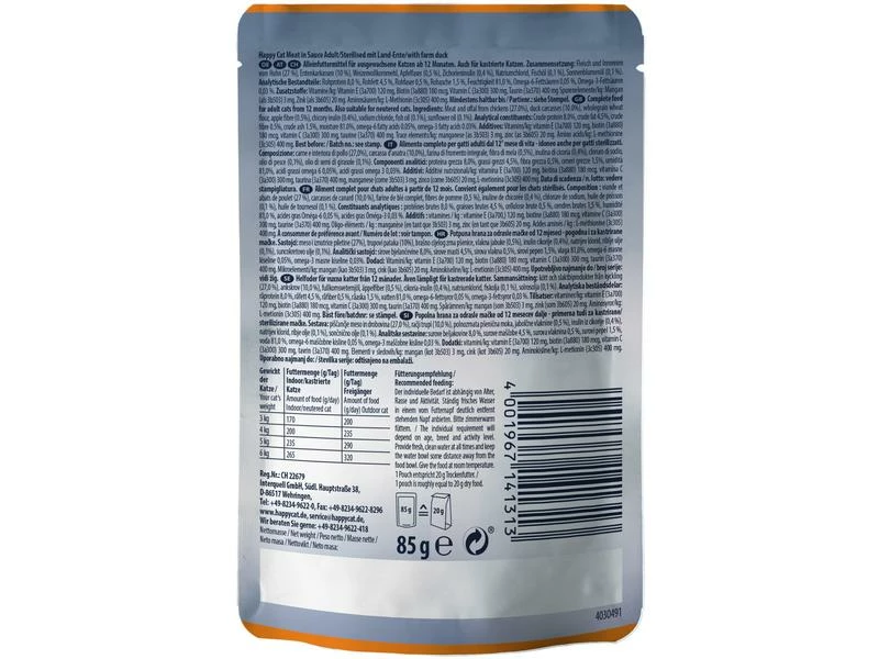 Happy Cat Nassfutter Meat in Sauce Culinary Land-Ente, 24 x 85 g