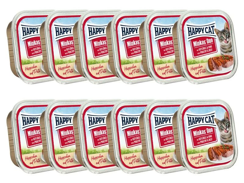 Happy Cat Nassfutter Minkas Duo Häppchen Geflügel & Rind, 12 x 100 g