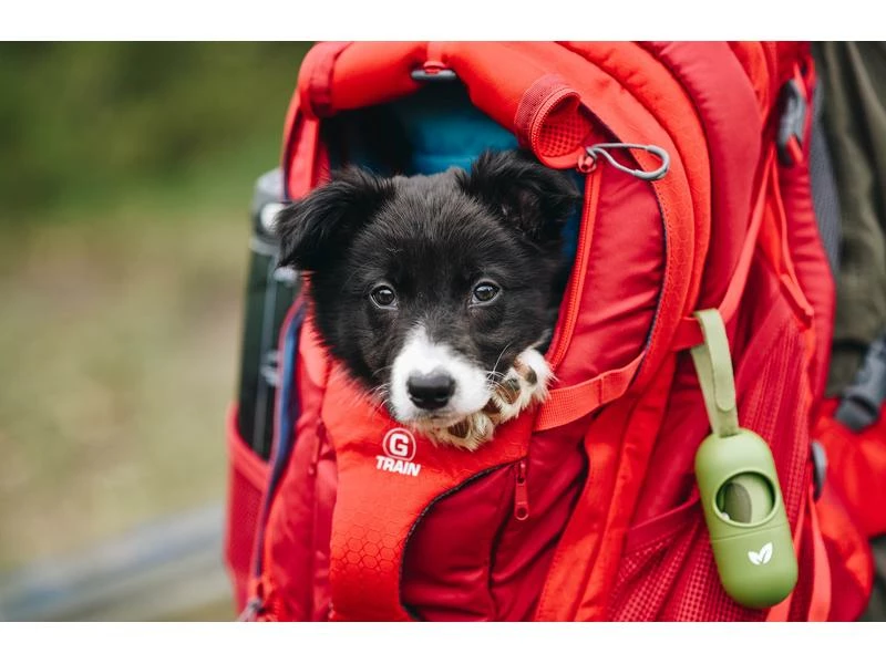 Der G-Train K9 ist so robust und durchdacht konstruiert wie die besten Tagesrucksäcke – denken Sie an ein gepolstertes Laptopfach, ein Paar Wasserflaschenhalter und eine grosse Menge an Stauraum mit Reissverschluss – der G-Train K9 fügt ein Haustiertransportfach mit einem aufrollbaren Mesh-Oberteil mit Reissverschluss hinzu ordentlich aus dem weg. Finden Sie Ihren Hund jetzt süss? Warten Sie, bis Sie sein kleines Gesicht sehen, das aus dem G-Zug herausragt und die vorbeiziehende Landschaft beobachtet.