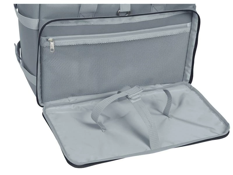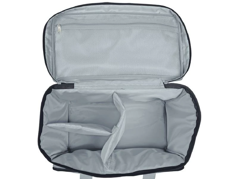 Der Organizer «Bagster» ist eine Universaltasche für alle wichtigen Reise-Utensilien und besteht aus strapazierfähiger Mikrofaser (abwaschbar) und ist ideal für grössere Ausflüge und Reisen geeignet. Mit dem Organizer «Bagster» können Sie endlich sämtliches Tierzubehör an einem Ort verstauen und aufbewahren. Im Inneren verfügt «Bagster» über verstellbare Trennwände, einem Fütterungsfach mit Netztasche und einen Riemen zur Befestigung des Napfes vorne. Seitlich befindet sich ein Riemen zur Befestigung der im Lieferumfang enthaltenen Kuscheldecke (100 x 80 cm) und hinten ein Dokumentenfach. Der Organizer kann mit den Tragegriffen transportiert werden