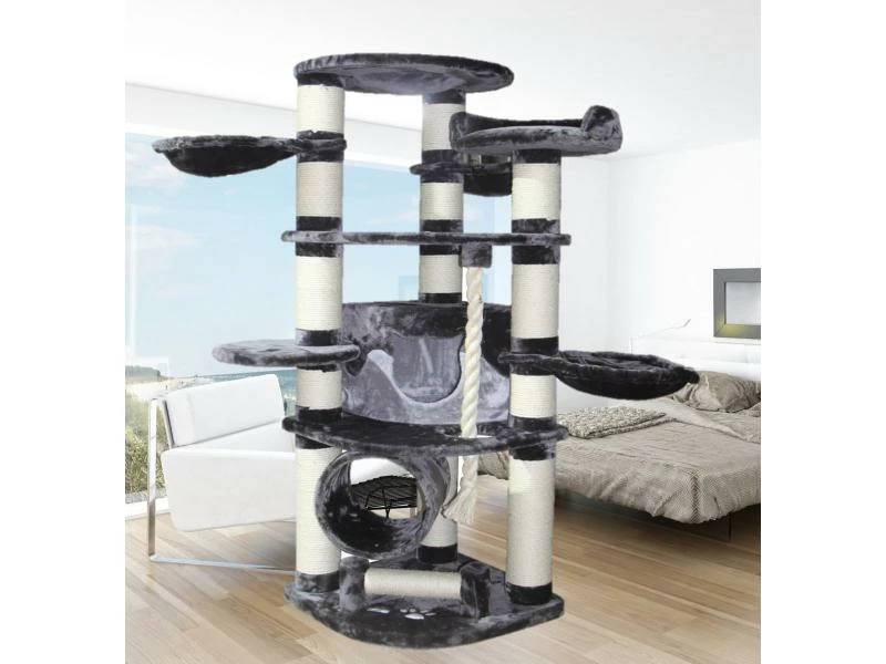 Der Katzenbaum Mallorca ist ein reines Kletterabenteuer. Fest und stabil steht er auf dem Boden und bietet Ihrer Katze mit unverkennbaren Qualitätsmerkmalen wie etwa seinen besonders starken Säulen einen sehr guten Halt und viele Möglichkeiten sich auszutoben. An den mit extra dickem Natursisal umwickelten Säulen kann Ihre Katze ausgiebig ihre Krallen schärfen und sich auf weichen und vollbespannten Schlafplätze aus Plüsch gebührend von wilden Abenteuern erholen. Grosszügige und massive Liegemulden lassen dabei jedes Katzenherz höher schlagen, denn die Mulden bieten einen Durchmesser von 45 cm und halten dank der Supra-Verstärkung ein Tragegewicht bis 35 kg. Dieser Baum ist aussergewöhnlich robust und standfest, wie alle aus dem Hause PET HOMES. Er präsentiert sich als echter Hingucker im Eckdesign und lässt sich dadurch auch platzsparender positionieren. Ihre Katze wird ihn lieben!