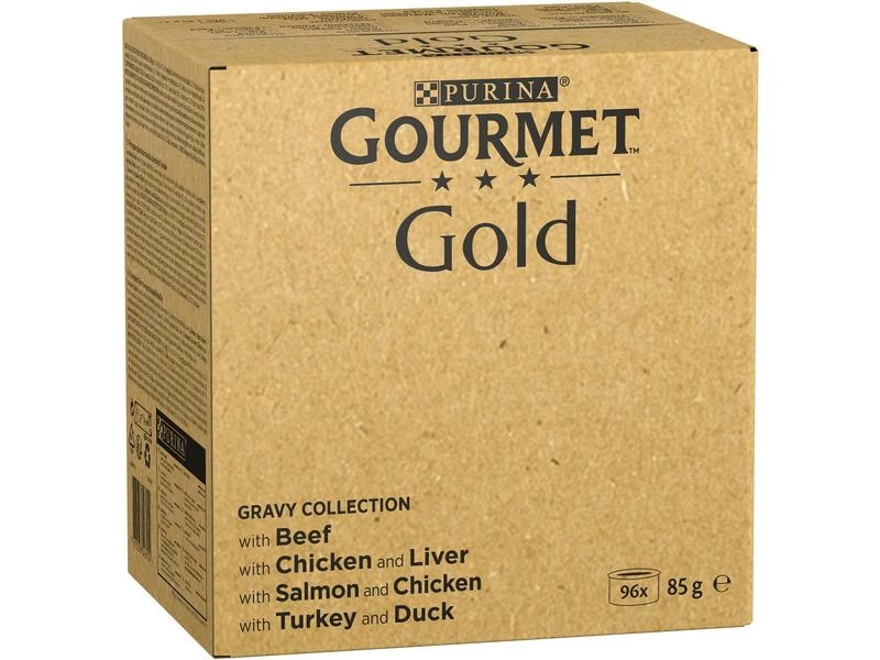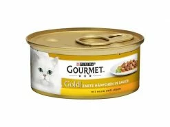 | Zusammensetzung | Fleisch und tierische Nebenerzeugnisse (davon 4% Rind, Truthahn, Ente oder Lachs), Getreide, Früchte oder Gemüse (min. 4% Oliven oder Karotten) in der Sauce), Zucker, Mineralstoffe |