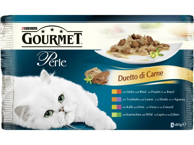 | Zusammensetzung | Fleisch und tierische Nebenerzeugnisse (je 14% Fleisch, davon je 4% Huhn und 4% Rind oder 4% Truthahn und 4% Lamm oder 4% Kalb und 4% Ente oder 4% Kaninchen und 4% Wild), pflanzliche Eiweissextrakte, Fisch und Fischnebenerzeugnisse, Mineralstoffe, Zucker |
