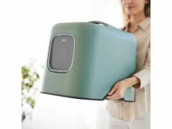 Die Haubentoilette Biala von Rotho, ist ein designorientiertes Katzenklo, das sich auch im Wohnbereich nicht verstecken muss? Nicht nur die Optik dieser Katzentoilette überzeugt, auch die Hygiene kommt nicht zu kurz. Die Schale aus Plastik ist einfach zu reinigen und dank des Kohlefilters treten keine unangenehmen Gerüche aus. Die Katzenklappe wird durch einen Magneten schnell und sicher verschlossen, sodass auch hier keine Dämpfe austreten können. Zur Säuberung kann der Deckel einfach mit einer Hand abgenommen werden.