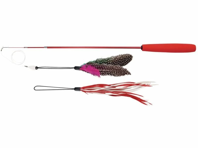 Katzen sind verspielte und neugierige Tiere. Ob sie im Haus oder der Wohnung leben oder ob sie draussen herumtollen, Spielen ist wichtig für sie und macht ihnen zudem grossen Spass. Es schärft die Sinne, hält fit und wenn Sie mit ihr spielen, stärkt das zusätzlich die Bindung zu Ihnen. Spielangeln sind besonders praktisch. Ihre Katze kann nach dem Spielzeug jagen, ohne dass Sie auch nur einen Kratzer abbekommen. Dank einem Stab aus Fiberglas ist die Spielangel sehr leicht und kann von 40 bis 98 cm ausgezogen werden. Für Abwechslung sorgen zwei unterschiedliche Spielzeuge, die Sie bei Bedarf einfach austauschen können.
