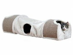 Im Spieltunnel von Trixie findet Ihre Katze ein Ort zum Spielen, Verstecken oder auch zum Schlummern. Der grosse Tunnel mit diversen Eingängen und hängendem Spielzeug bietet vielerlei Möglichkeiten sich zu verstecken und Spielzeuge zu jagen. Ausgestattet mit Plüsch findet er auch als bequemer Liege- und Schlafplatz Verwendung. Zwei Höhlen verfügen über eine Sisalkratzfläche, an der sich Ihr Stubentiger ausgiebig die Krallen wetzen kann.
