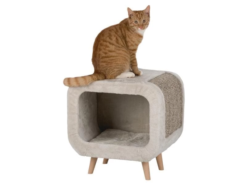 Wenn Sie es stylisch mögen und Ihre Katze gerne bequem liegt , wählen Sie diese Kuschelhöhle aus weichem Plüsch-Bezug, Sisalkratzflächen und Buchenholzfüssen. Die Höhle ist mit weichem Plüsch ausgestattet und auf dem von Hand waschbaren Wendekissen kann sich Ihre Katze stilvoll und gebührlich von aufregenden Abenteuern erholen.