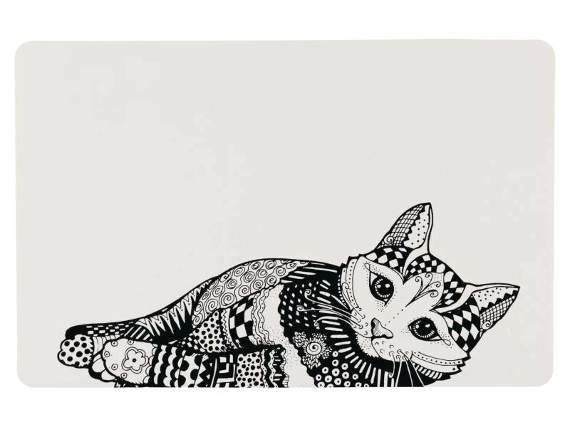 Die Napfunterlage Zentangle schützt den Futterplatz Ihrer Katze und sorgt für rutschfesten Stand des Napfes. Wenn Ihrer Katze beim Fressen etwas daneben geht, lässt sich die Unterlage spielend leicht reinigen. Zudem wird der Fussboden sauber gehalten und vor eventuellen Wasserflecken geschützt.