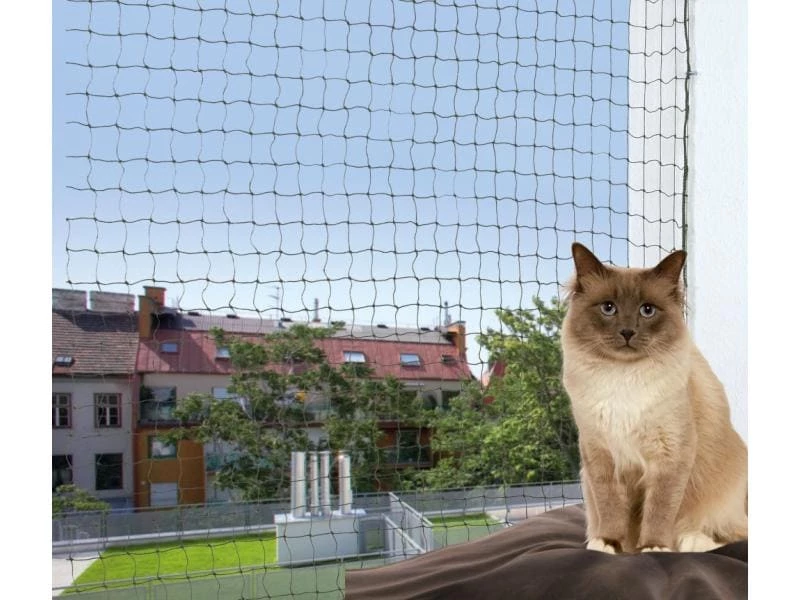 Das strapazierfähige, drahtverstärkte Schutznetz von Trixie bietet Ihren Katzen erhöhte Sicherheit am gekippten Fenster und an allen anderen gefährlichen Orten, wo sie entweder Gefahr laufen, in die Tiefe zu stürzen oder Bereiche zu erkunden, die nicht für sie gedacht sind. Das Schutznetz eignet sich aufgrund der engen Maschenstruktur auch für kleine Katzen und ist darüber hinaus strapazierfähig und uv-beständig. Die für die Installation benötigten Utensilien wie Haken, Dübel und Befestigungsleine sind bereits im Lieferumfang enthalten.