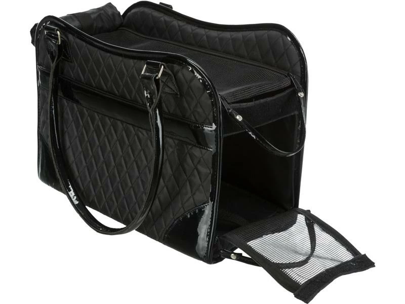 Transportieren Sie Ihren Vierbeiner sicher und bequem in dieser stylischen, mit gestepptem Kunstleder abgesetzten Tasche. Ausgestattet mit einem gesteppten Polyester-Bezug und Netz-Einsatz, der für optimale Luftzufuhr sorgt, gestaltet die Tasche den Transport für Ihren Hund besonders angenehm. Eine integrierte Kurzleine verhindert das Herausspringen Ihres Hundes. In zwei angebrachten Taschen bewahren Sie Kleinigkeiten in greifbarer Nähe auf.