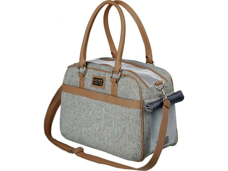 Transportieren Sie Ihren Vierbeiner sicher und bequem in dieser stylischen Tasche aus grauem Webstoff. Mit einer Schaumstoff-Füllung, einer gepolsterten Einlage in Lammfell-Optik und Netz-Einsätzen, die für optimale Luftzufuhr sorgen, gestaltet die Tasche den Transport für Ihren Hund besonders angenehm. Eine integrierte Kurzleine verhindert das Herausspringen Ihres Hundes. Der abnehmbare, stufenlos verstellbare Schulterriemen lässt sich individuell auf Ihre Bedürfnisse einstellen. In einer Tasche bewahren Sie Kleinigkeiten in greifbarer Nähe auf.