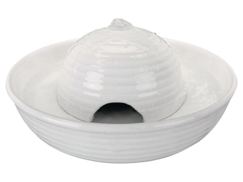 Der Trinkbrunnen Vital Flow von Trixie spendet frisches, fliessendes Wasser und regt Tiere zur häufigeren Wasseraufnahme an. Er ermöglicht dem Tier das Trinken von oben aus der Öffnung sprudelndem Wasser oder von ruhigem Wasser aus der Schale. Durch die Wasserzirkulation vermindern sich Gerüche, das Wasser wird mit Sauerstoff angereichert und überdies auch auf natürliche Weise gekühlt.