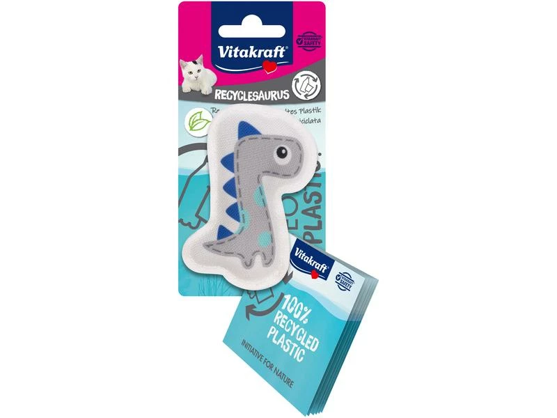 Als Dinosaurier unsere Erde bevölkerten, gab es noch keinen Plastikmüll. Der Stoff und die weiche Füllung der Vitakraft Recyclesaurus Toys bestehen aus 100% recyceltem PET. Aus Liebe zum Tier und zu unserem Planeten verarbeiten wir zudem natürliche, nachwachsende Rohstoffe. Die hochwertige Spielzeugserie macht Spaß und schützt die Umwelt.