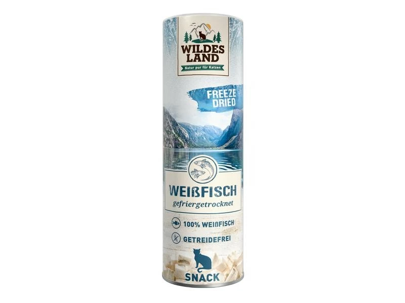 Der Freeze Dried Snacks Weissfischbestehen zu 100% aus frischem Fisch, der nach dem Fang zunächst in Würfelform gebracht und eingefroren wird. In einem speziellen Gefriertrocknungsprozess wird dem Fisch im Anschluss durch Vakuum das Wasser entzogen. Auf diese Weise bleiben alle wichtigen Inhaltsstoffe erhalten und Sie versorgen Ihre Katze auch in Trainings- und Belohnungssituationen mit wichtigen Proteinen, Nährstoffen und Vitaminen. Tipp: Besonders wird sich Ihr Liebling freuen, wenn Sie das normale Katzenfutter verfeinern, indem Sie den Freeze-Dried Snack einfach darüberstreuen.