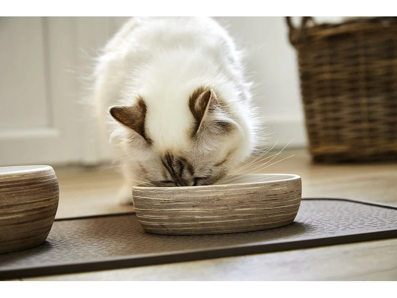 Einen wahren Genuss «on the rocks» versprechen die Wolters Diner Stone Näpfe, das formschöne und zeitlose Design passt perfekt in jede Wohnungseinrichtung. Der Katzennapf der Serie ist aufgrund seiner niedrigen Ränder und der ovalen Form sehr gut an die Bedürfnisse der empfindlichen Schnurrhaare von Katzen angepasst. So werden diese nicht abgeknickt und Ihre Samtpfote kann artgerecht ihr Futter zu sich nehmen. Die aus Keramik hergestellten Näpfe besitzen eine ansprechende natürliche Steinoptik, sind mit Bedacht auf die Umwelt schwermetallfrei glasiert und lebensmittelecht und somit völlig unbedenklich für Tiere. Die Näpfe sind handbemalt, somit ist jeder Napf ein Unikat. Sie eignen sich optimal für Nass- und Trockenfutter. Kleiner Tipp: Die runden Diner Stone Näpfe eignen sich im Übrigen sehr gut als zusätzliche Wassernäpfe für Katzen, da Samtpfoten in ihrem Zuhause verschiedene Wasserstellen lieben.